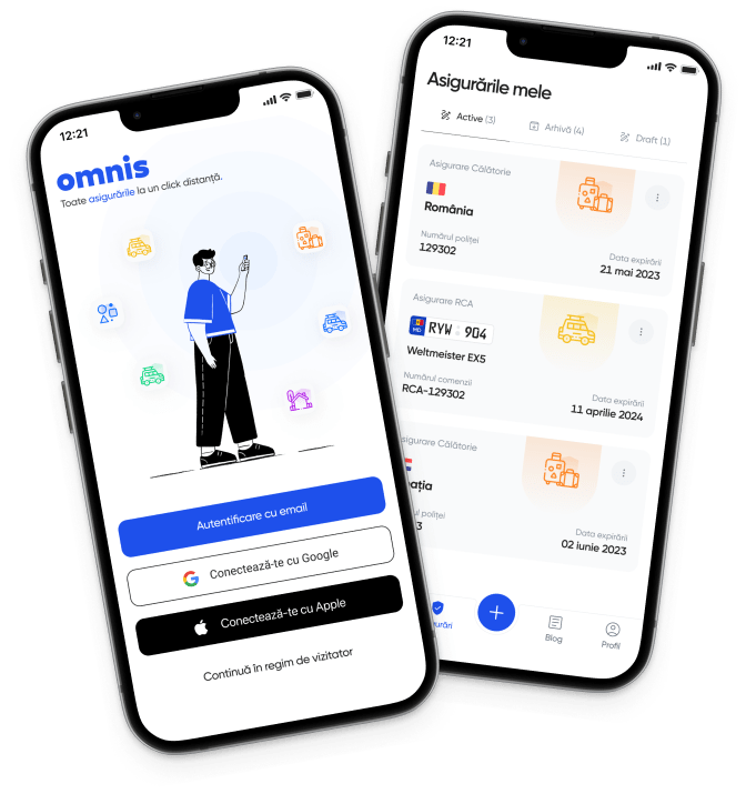 Salut! Ești gata să descoperi modul revoluționar de a gestiona asigurările și taxele auto? Bine ai venit la OMNIS, aplicația care redefinește piața asigurărilor auto în Moldova. Cu OMNIS, poți obține asigurarea RCA, Cartea Verde, rovinieta, e-vinieta și taxa de drum rapid și eficient, în doar câțiva pași simpli, direct din aplicația mobilă sau din cabinetul personal al versiunii web.
